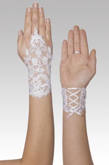 Megcsillanó üveggyöngyökkel hímzett, gyönyörű csipke menyasszonyi kesztyű. Ivory színű. Hossza: 20 cm.