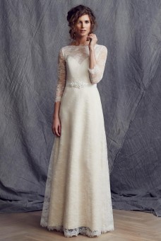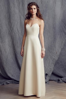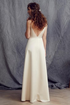 :LILLY Mix & Match - Elegáns, nude színű szatén ruha, mely önállóan is viselhető, vagy tetszés szerint kombinálható bármelyik különálló, földig érő, csipkés felsőrésszel. Csipke felsőrésszel kombinálva letisztult, elegáns menyasszonyi ruhaként funkcionál.