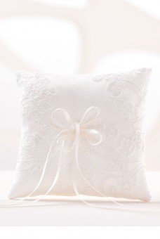 Elegáns, csipkével borított kisebb méretű gyűrűpárna. A gyűrűk a keskeny szalagok segítségével rögzíthetőek rá. Mérete: 12 x 12 cm.